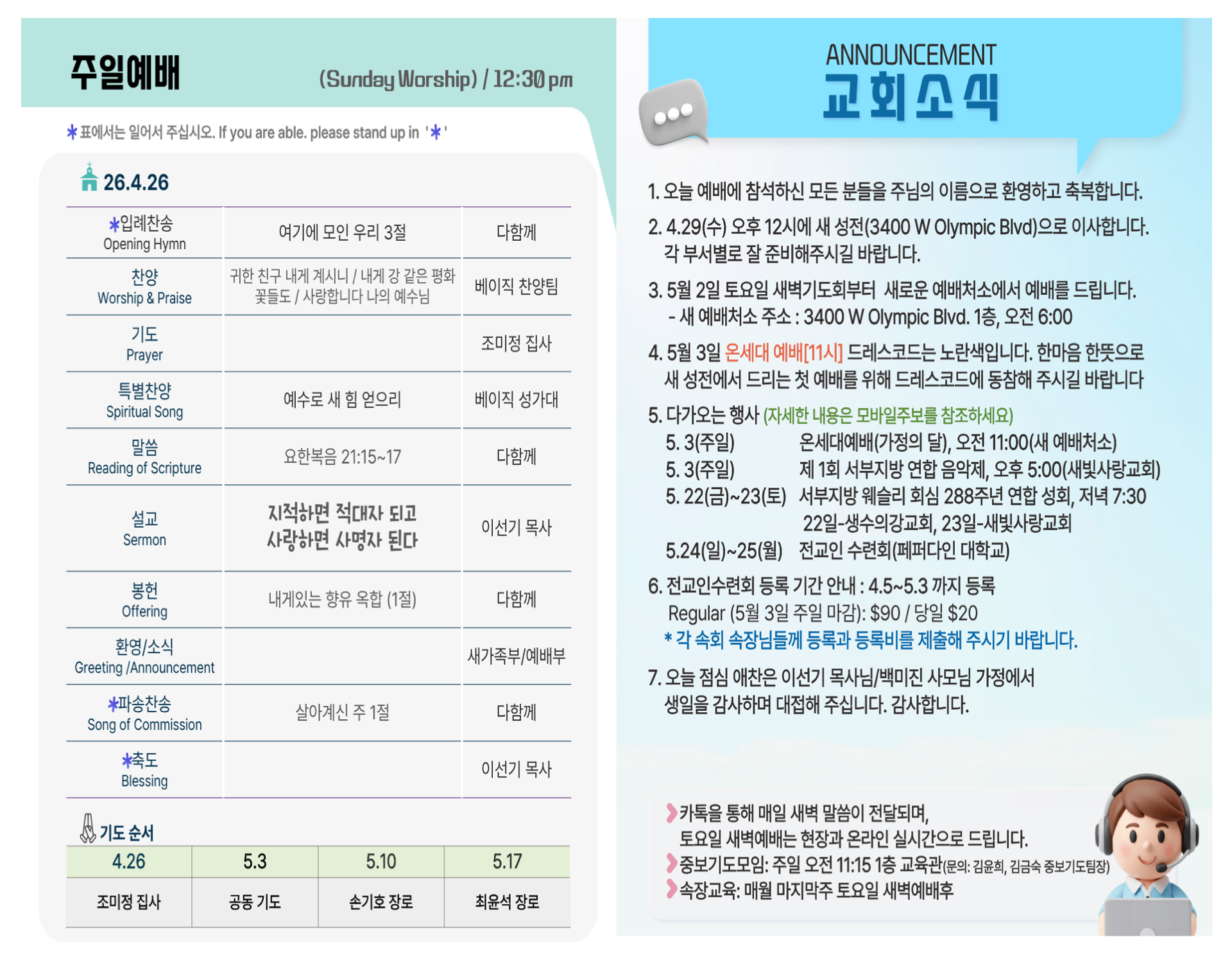 예배 시간 안내