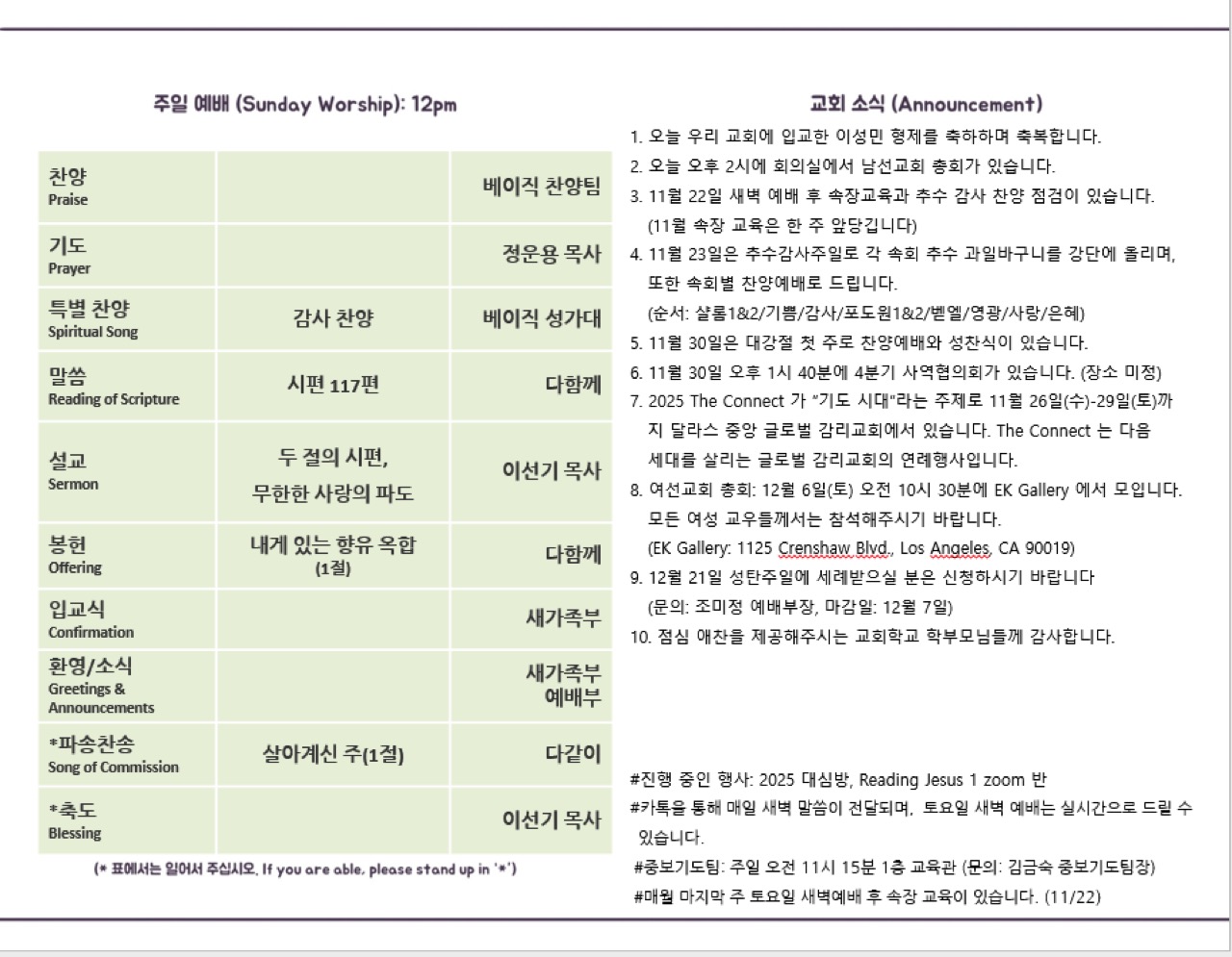 예배 시간 안내